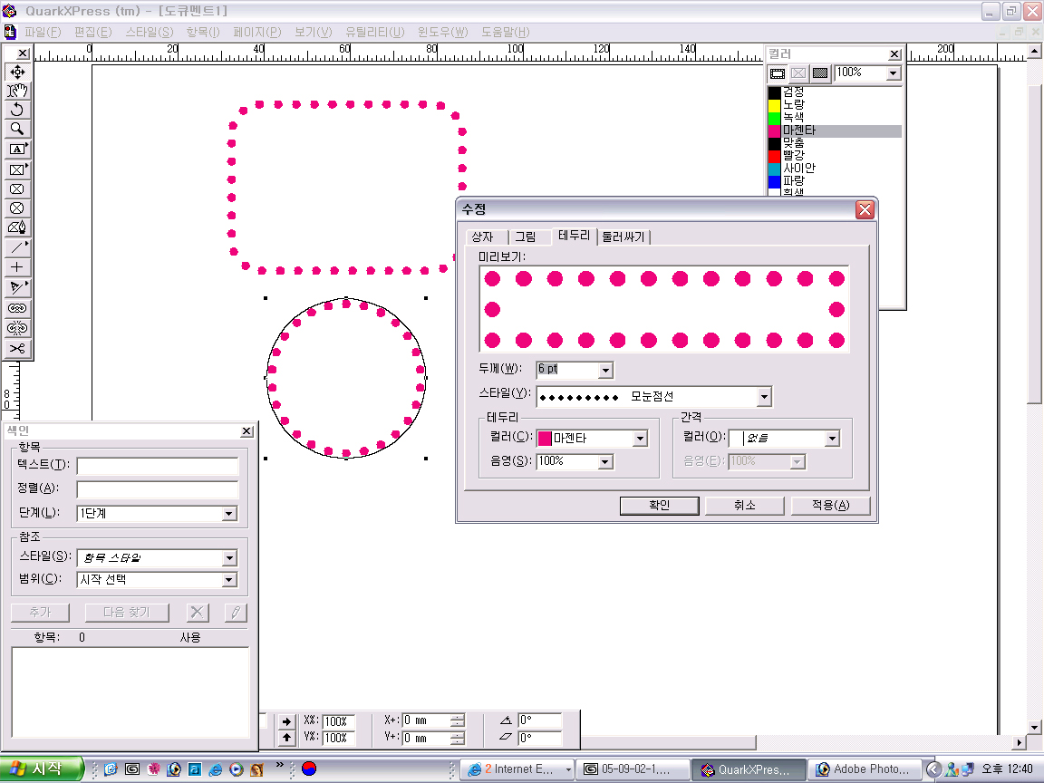 쿼크에서 점선으로된 둥근테두리는 어떻게 하나요??